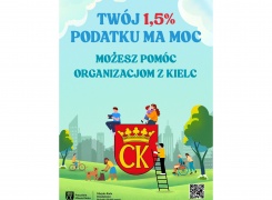 Zachęcamy do wspierania organizacji pożytku publicznego mających siedzibę na terenie Kielc. Wraz ze składaniem corocznych rozliczeń podatkowych można przekazać 1,5% swojego podatku na rzecz OPP.